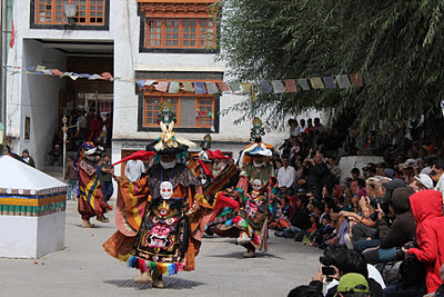 あと、チベット人も何人か民族衣装で着ており、ラダックの民族衣装とは違うな、と思いました。スラッとしたシルエット意識だね、女性は。袈裟のように、右肩出す上着を羽織ったり、エプロン様の布を腰に巻いていたり。来てるチベットねえさん達もスラっとしていたので、全然露出してないのに(長袖&ロングスカートなワンピース)セクシーですらありました!